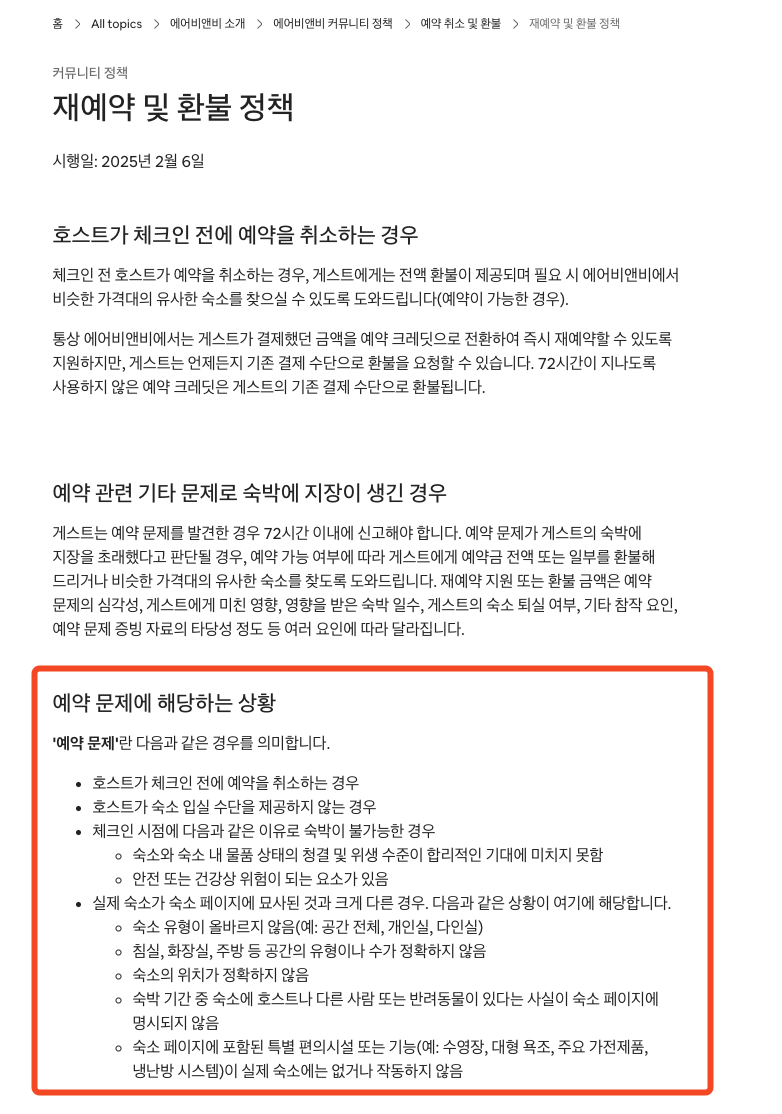 다행이 저희가 겪고 있는 상황은 에어비엔비의 예약 문제에 해당하는 상황에 해당하였고, 환불 절차를 밟을 수 있다고 하더라고요.