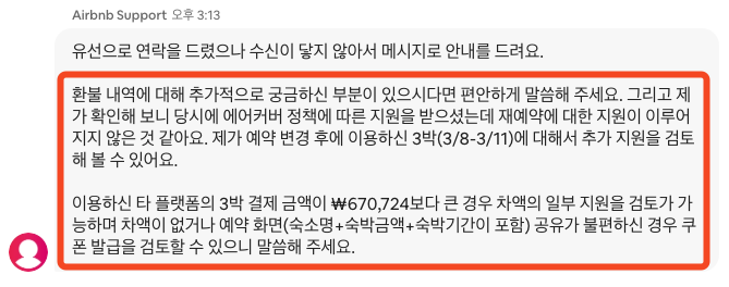 귀국하고 나서 찾아보니까 에어비앤비에서 재예약 비용을 일부 지원해 준다는 내용이 있더라고요.